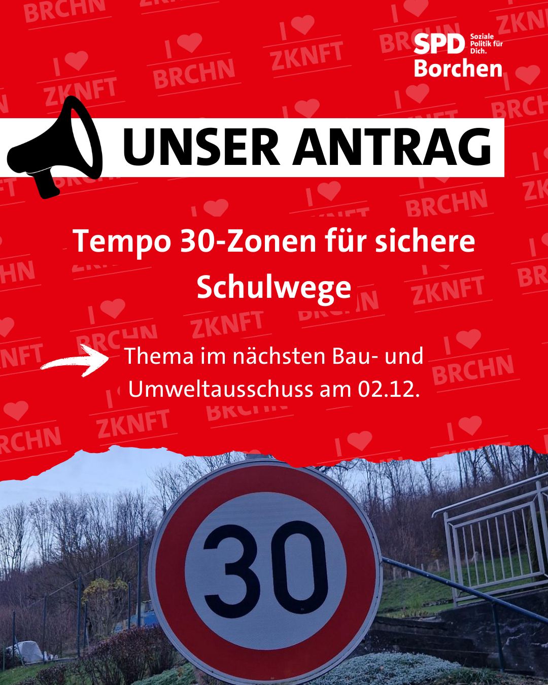 Borchen, 24. November 2025 – Die SPD Borchen setzt sich für eine deutliche Reduzierung der Höchstgeschwindigkeit in der Gemeinde ein. Mit einem Antrag im Bau- und Umweltausschuss fordert die Fraktion die Prüfung aller rechtlichen Möglichkeiten zur Einführung von Tempo-30-Zonen – insbesondere in sensiblen Bereichen wie Schulwegen, Kindergärten und Spielplätzen.